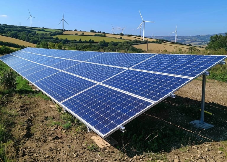 Installation de panneaux solaires sur toitures ou structures adaptées, dans le respect des normes et des règles de sécurité.